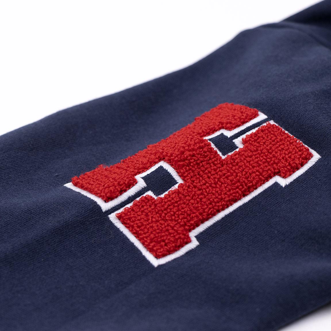 Felpa girocollo stile college blu navy, caratterizzata da un design a blocchi di colore con fascia centrale bianca, righe rosse e la scritta "Hogwarts" in carattere varsity. Materiale: 100% cotone. Prodotto a licenza ufficiale.